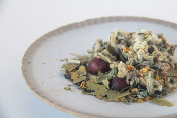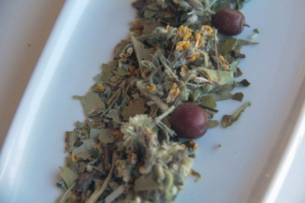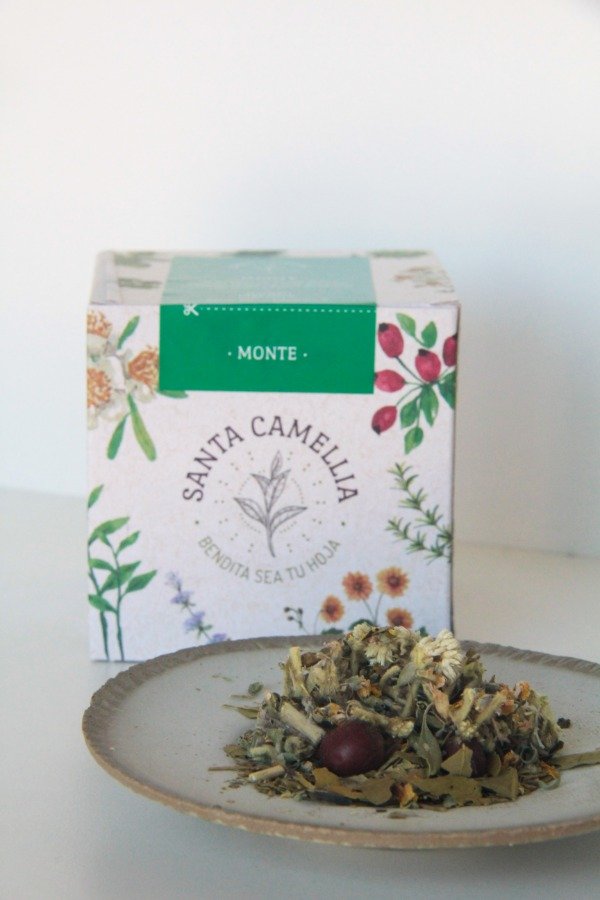 Infusión a base de Yerba mate canchada con bayas de Mistol, Peperina, Burrito, Palo amarillo, flores de Marcela y flores de Chañar.