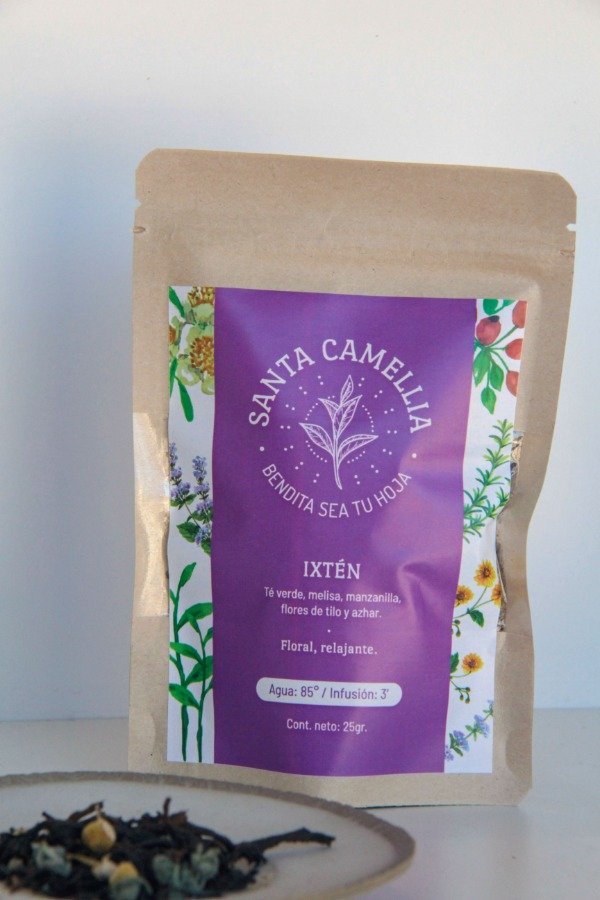 Blend de té con Base de Té Verde (Misiones - Argentina), Melisa, Manzanilla, Flores de Tilo y Pétalos de Azahar.