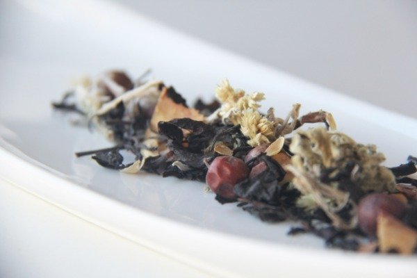 Base de Té Negro con Duraznos orgánicos deshidratados, Bayas de Mistol, Cascarilla de Algarroba y Flores de Marcela.