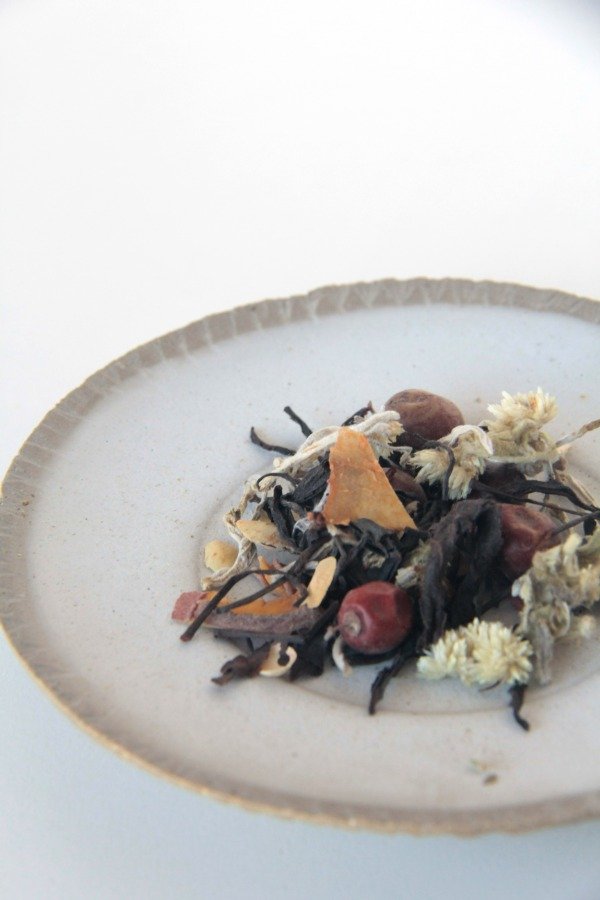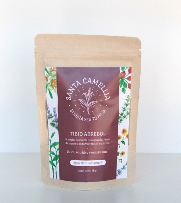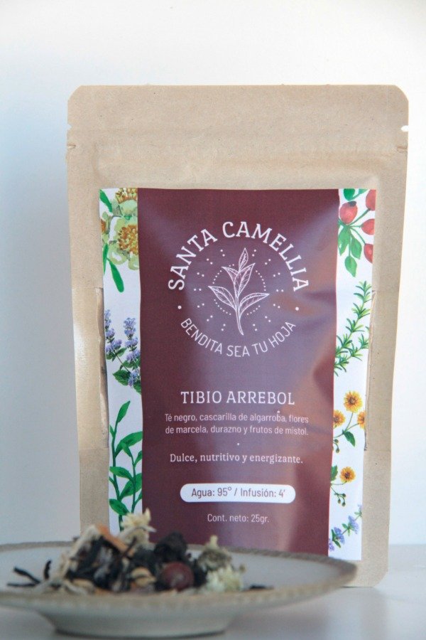 Base de Té Negro con Duraznos orgánicos deshidratados, Bayas de Mistol, Cascarilla de Algarroba y Flores de Marcela.